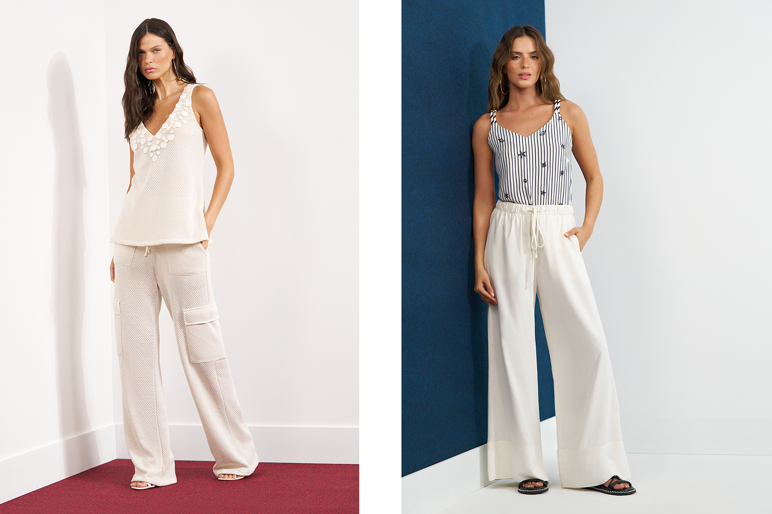 Os conjuntos facilitam muito a rotina. Eles formam looks prontos. Além disso, podem ser usados separados. Com isso, as combinações aumentam. Dessa maneira, o guarda-roupa se torna mais funcional e prático.